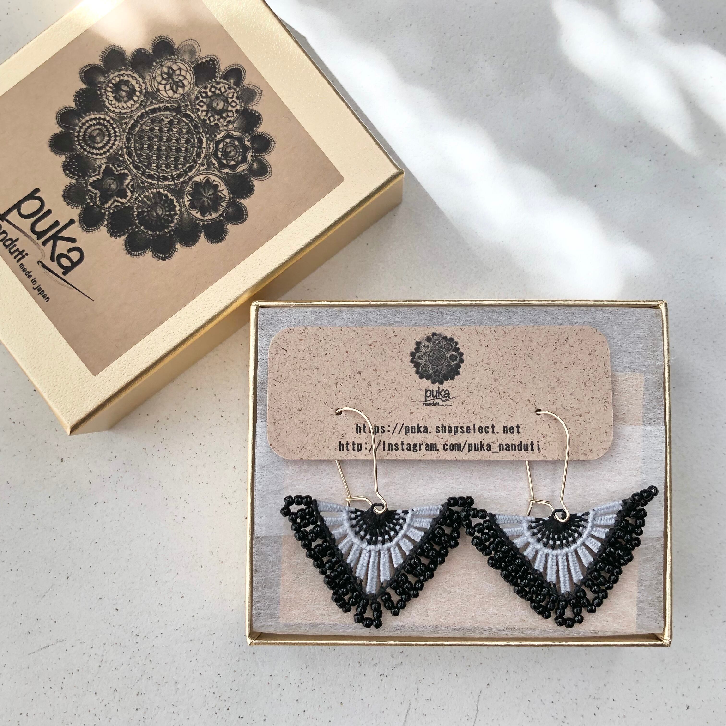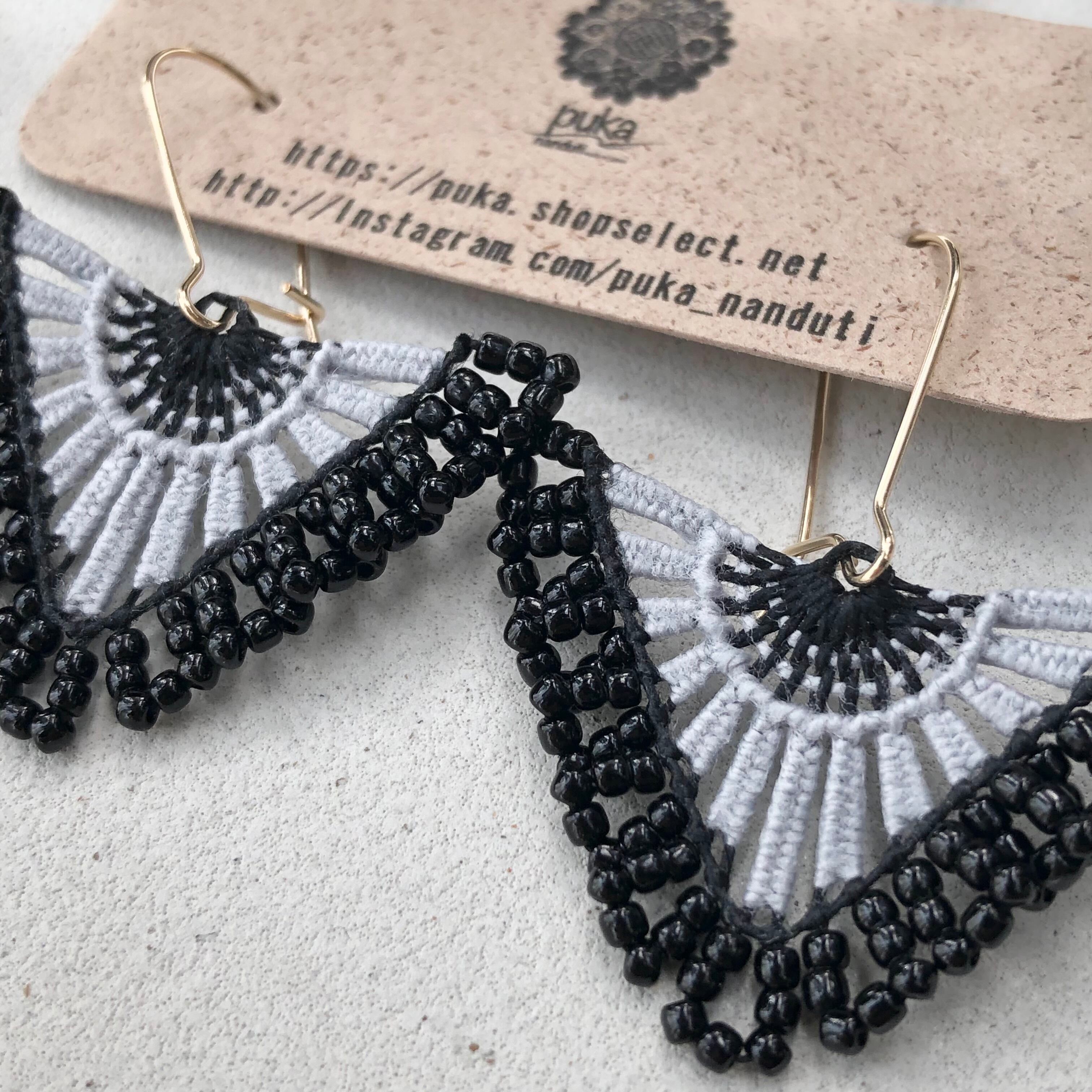 南米パラグアイの伝統工芸ニャンドゥティという美しいレース編みの技法で作った耳飾りです。