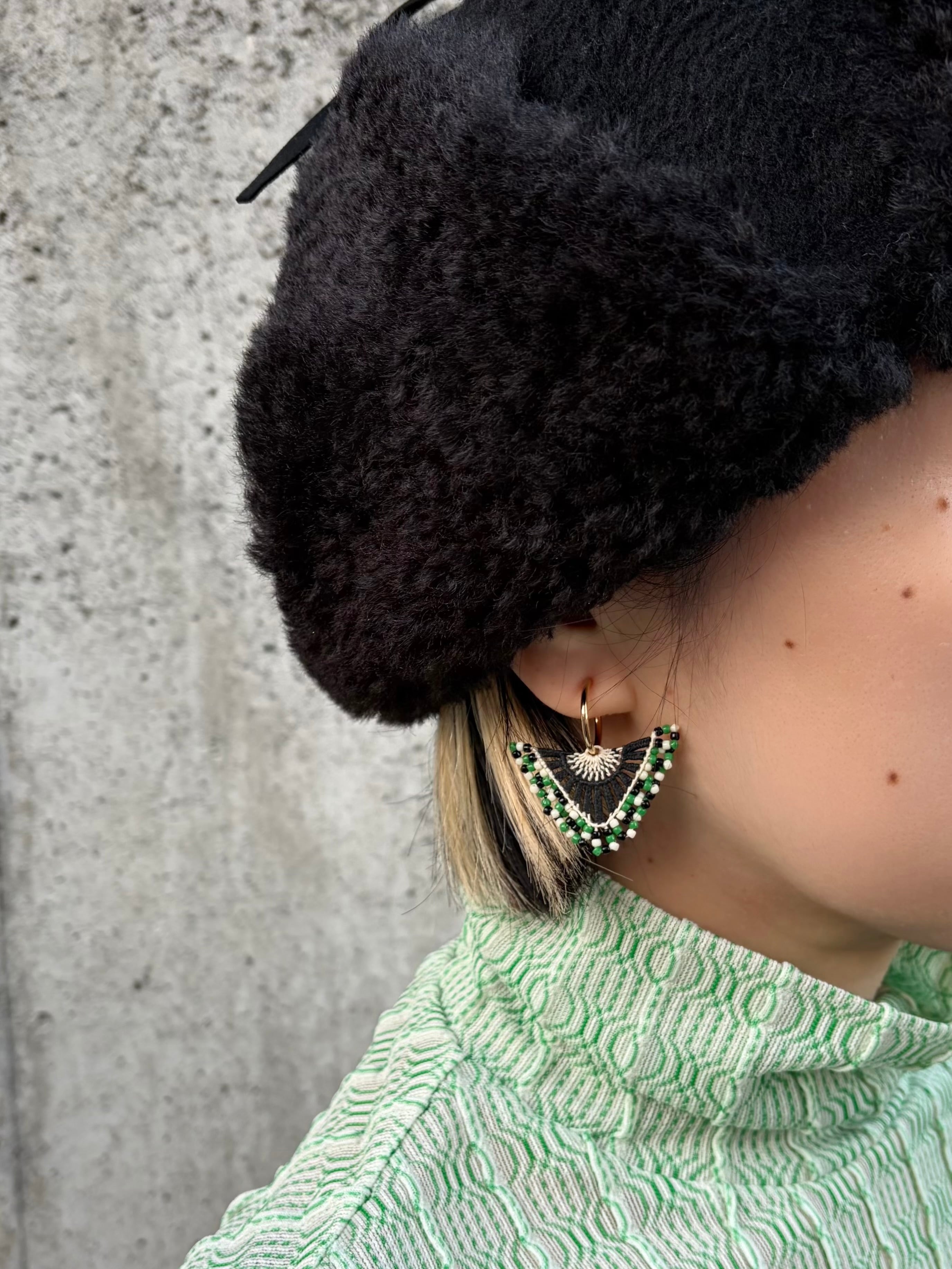 こちらはpuka定番の逆三角形デザインに、沢山付けたビーズがヒラヒラとレースの様に見えるところがポイントの耳飾りです。