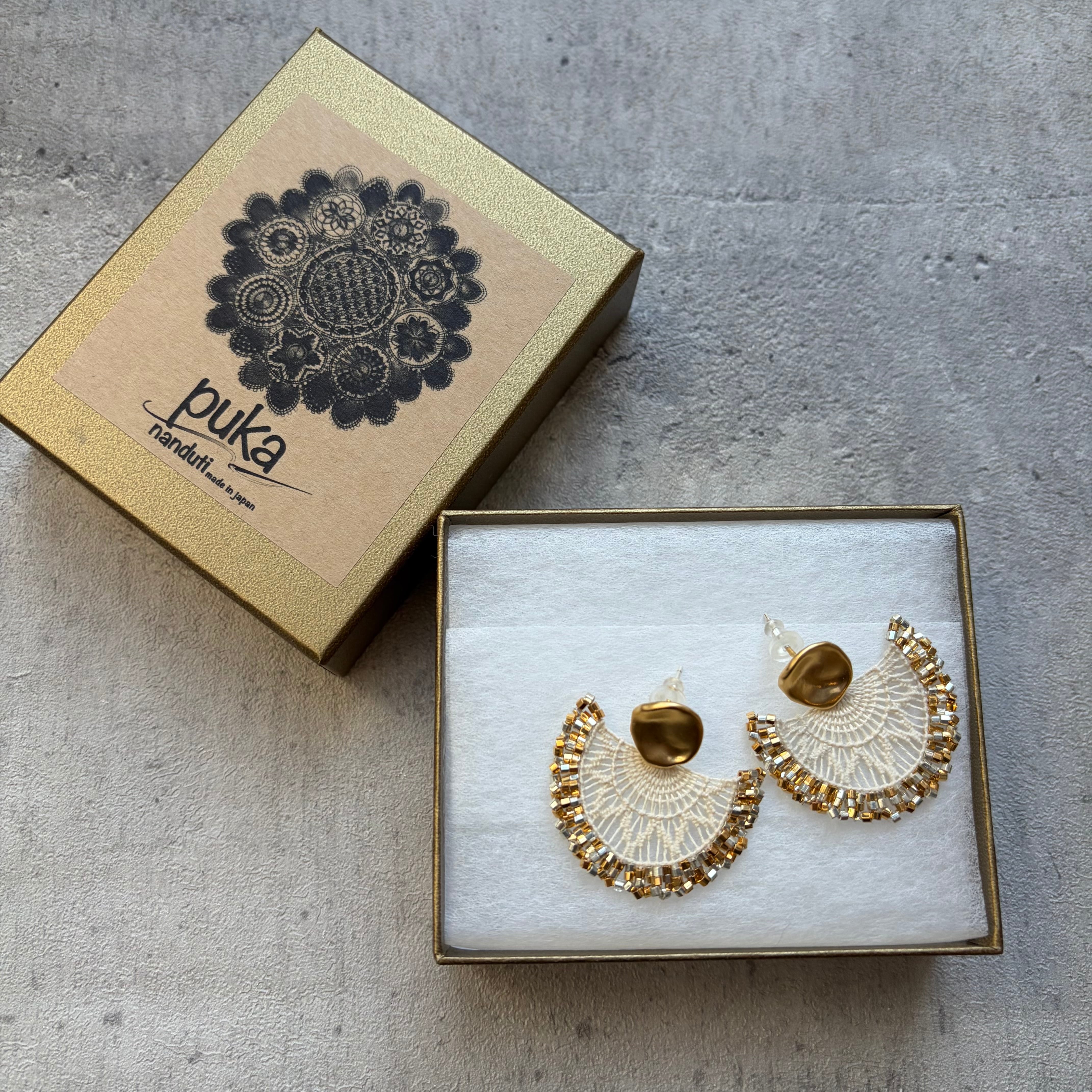 南米パラグアイの伝統工芸ニャンドゥティという美しいレース編みの技法で作った耳飾りです。