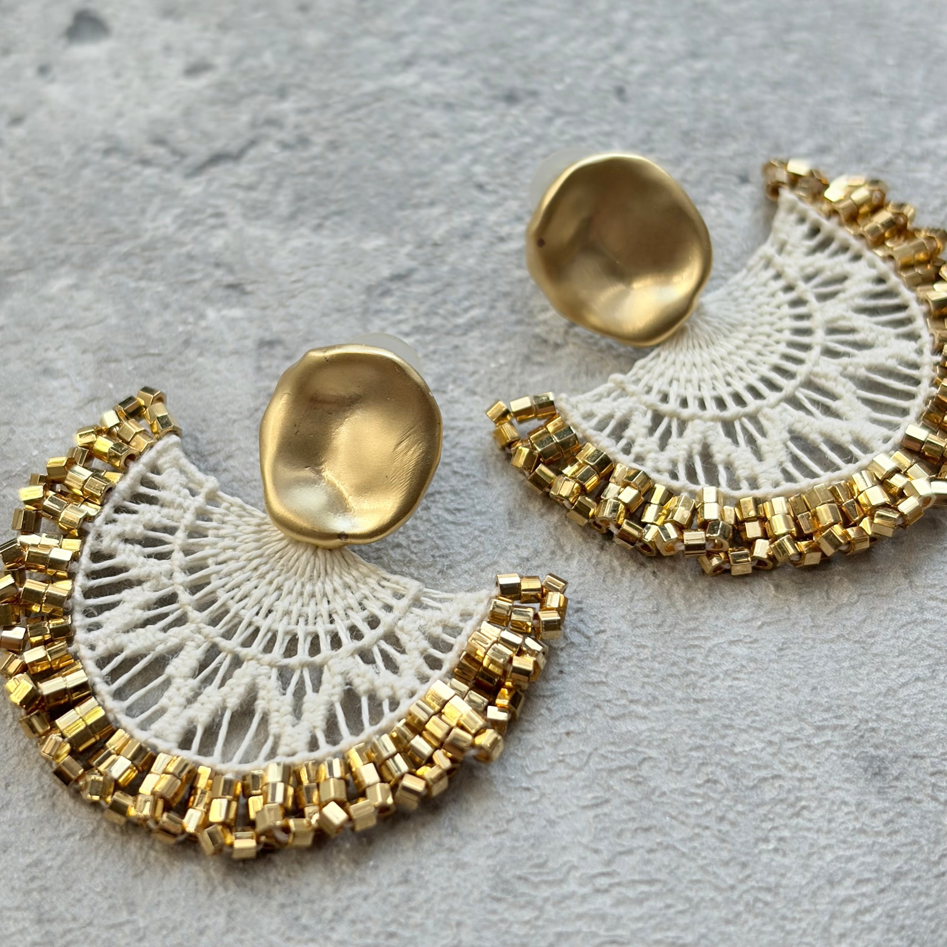南米パラグアイの伝統工芸ニャンドゥティという美しいレース編みの技法で作った耳飾りです。
