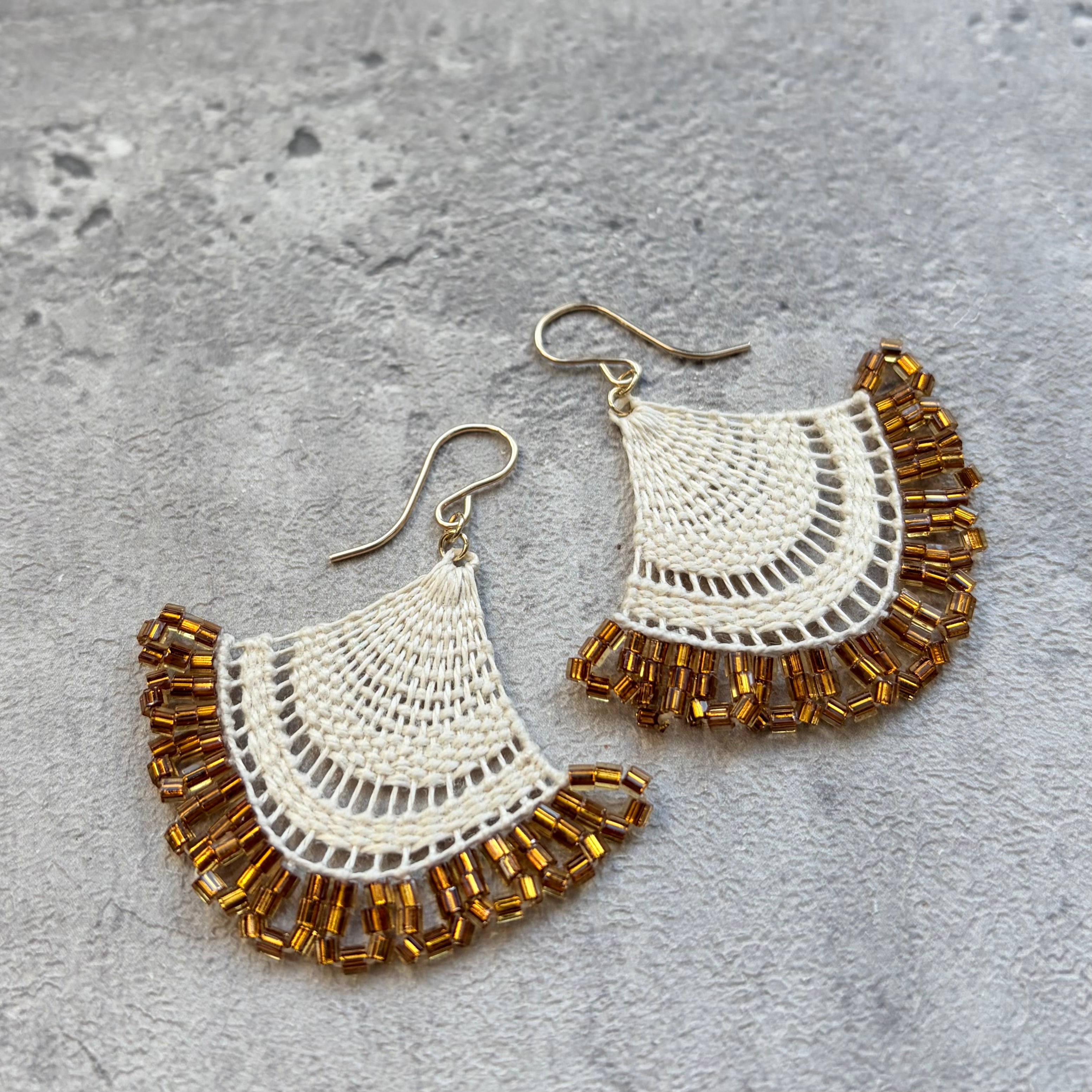 南米パラグアイの伝統工芸ニャンドゥティという美しいレース編みの技法で作った耳飾りです。