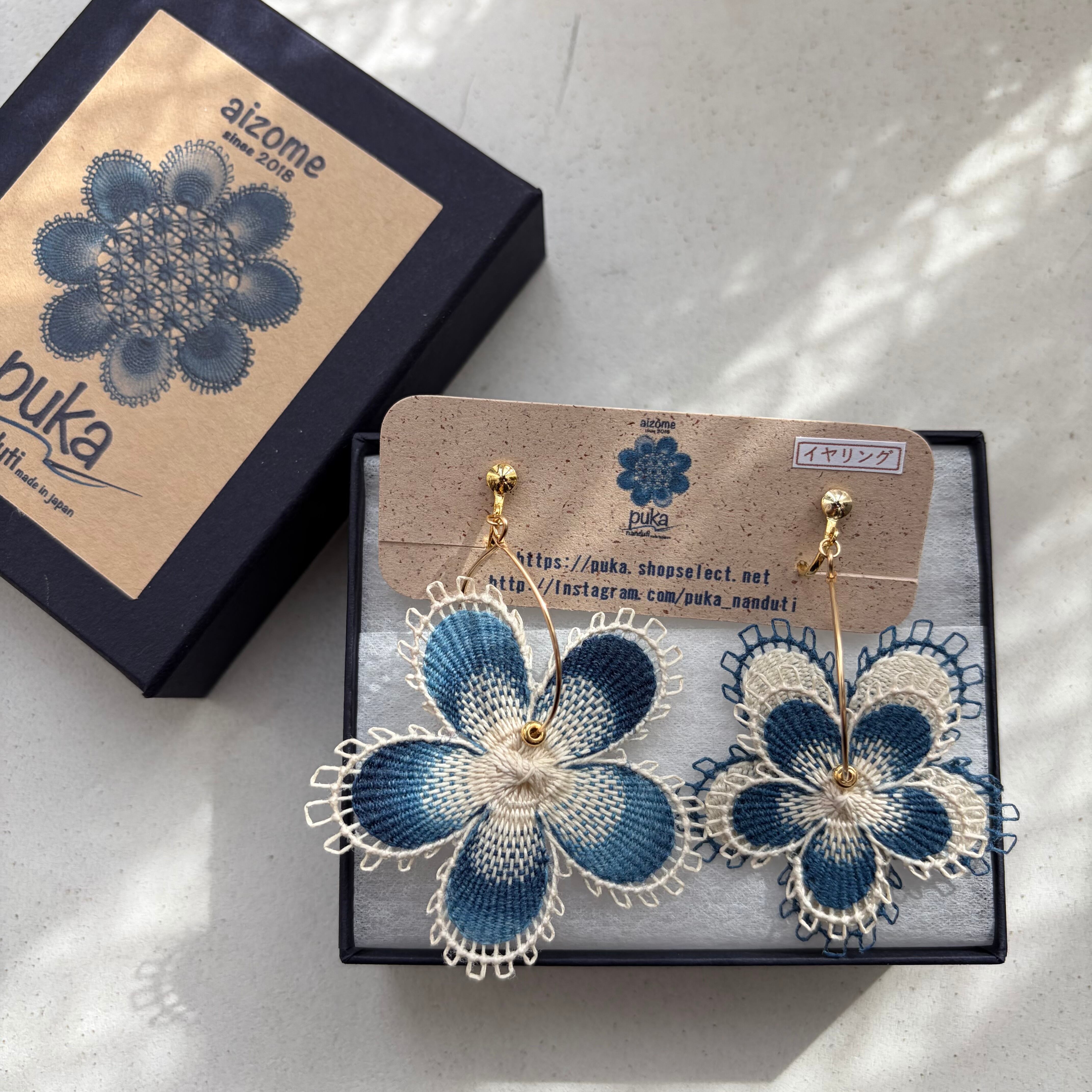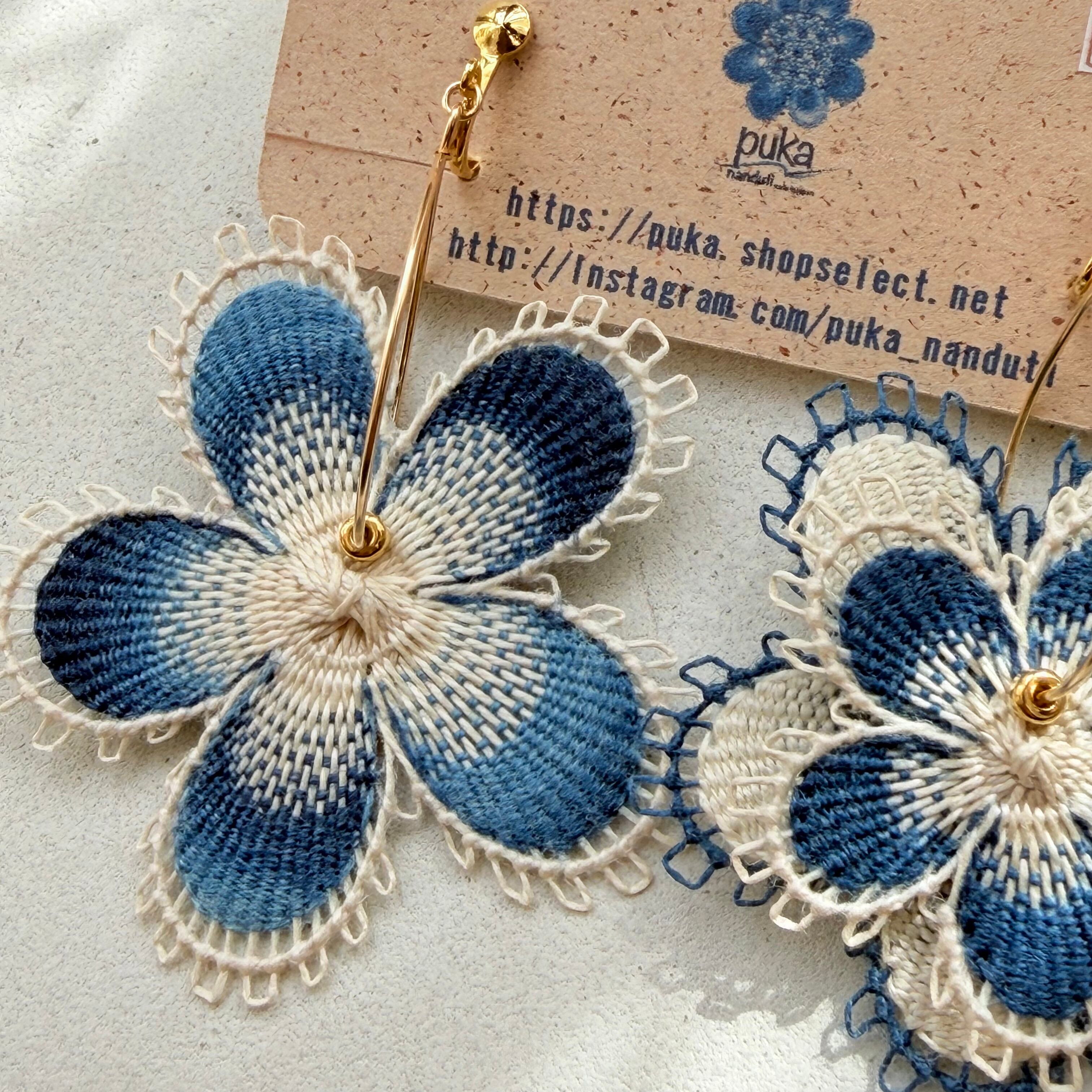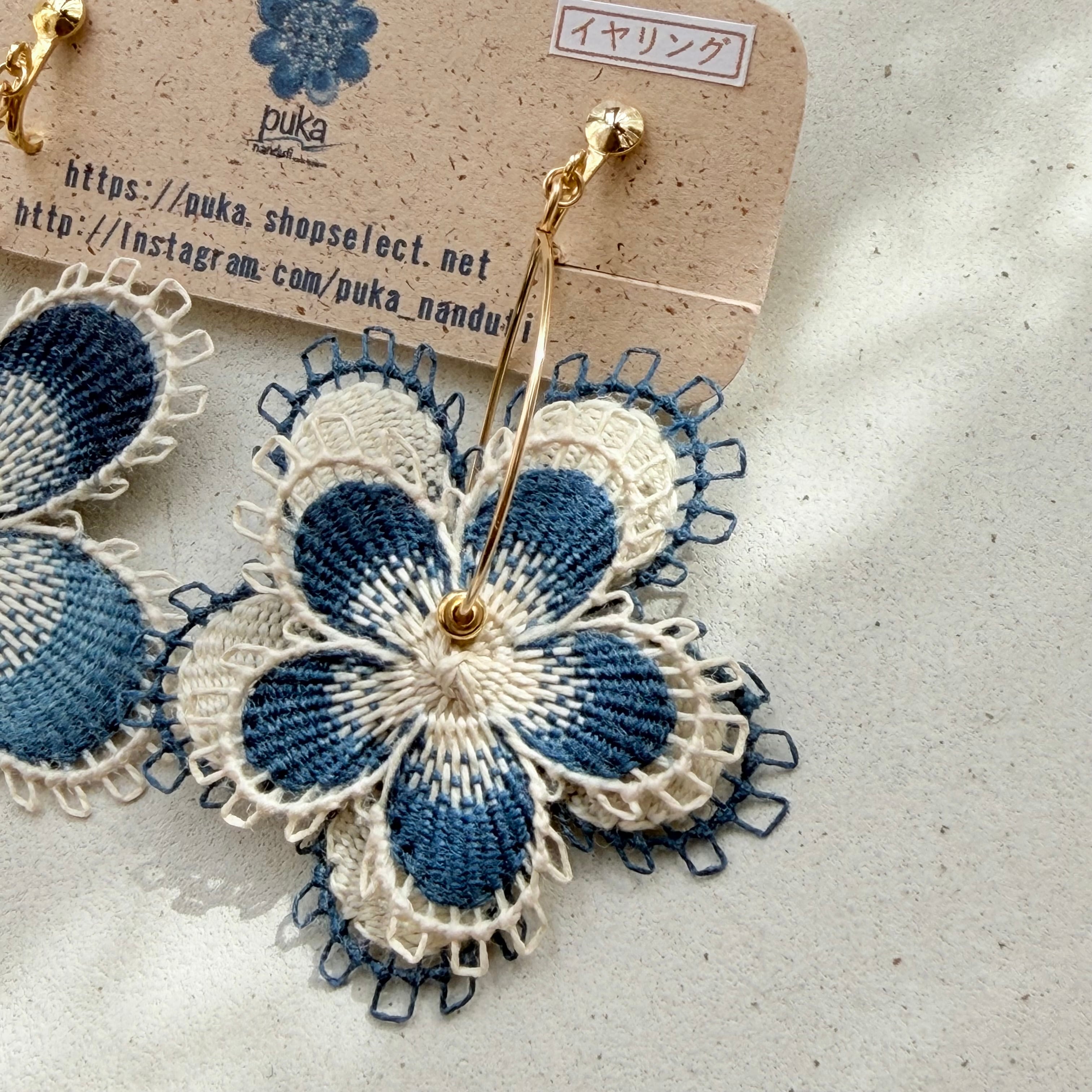 大ぶりのお花ですが糸で出来ているためとても軽いつけ心地のピアスです。
