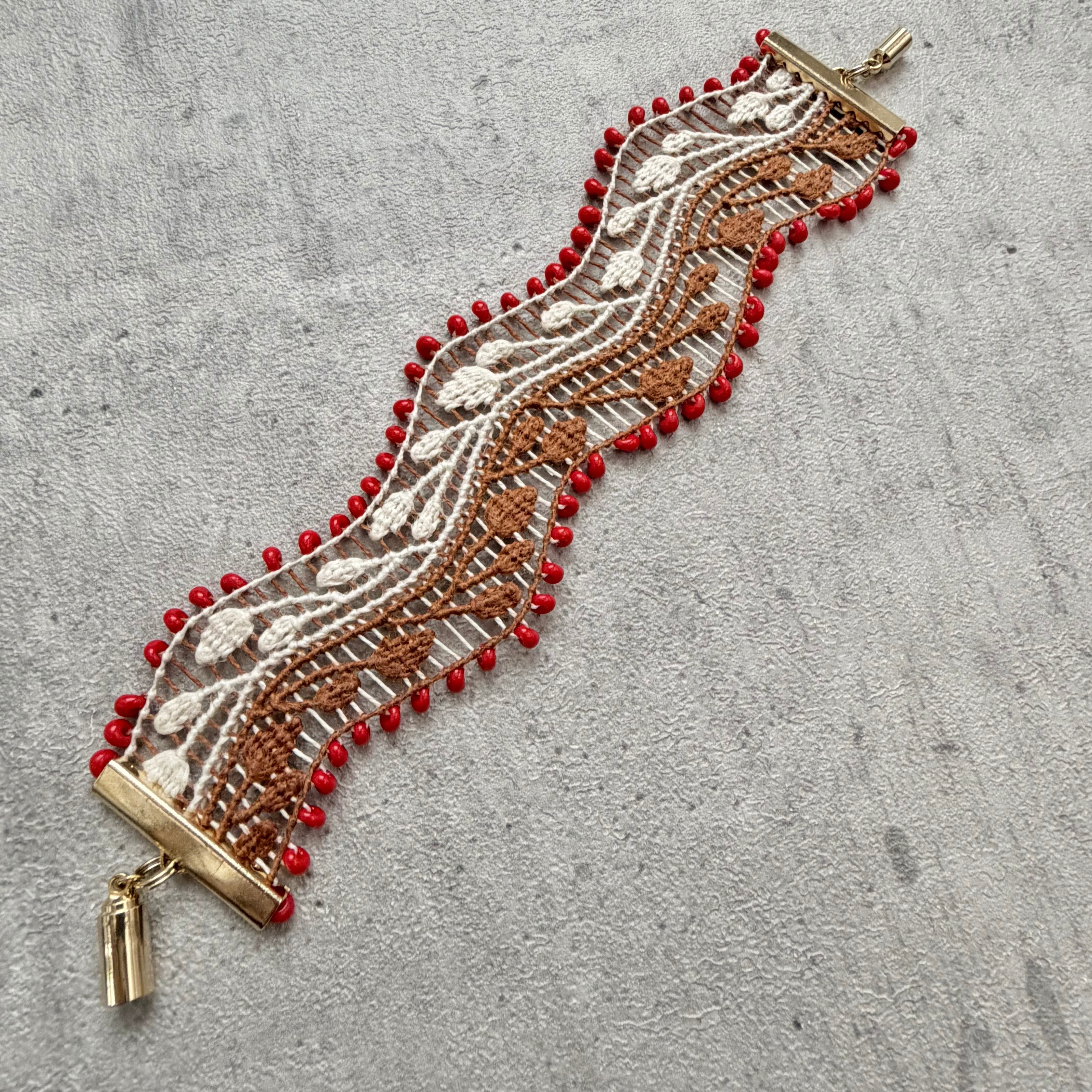 南米パラグアイの伝統工芸ニャンドゥティという美しいレース編みの技法で作ったブレスレットです。