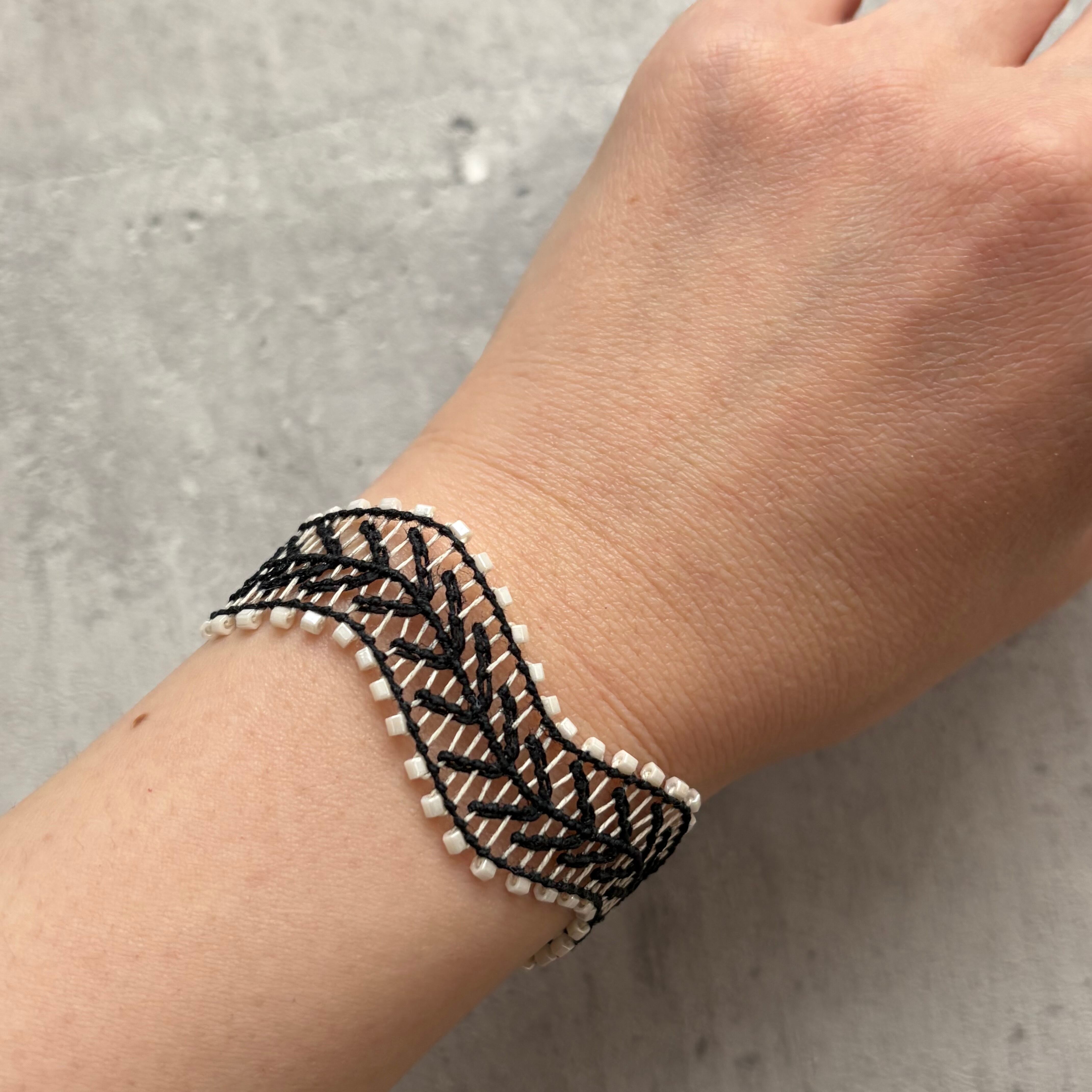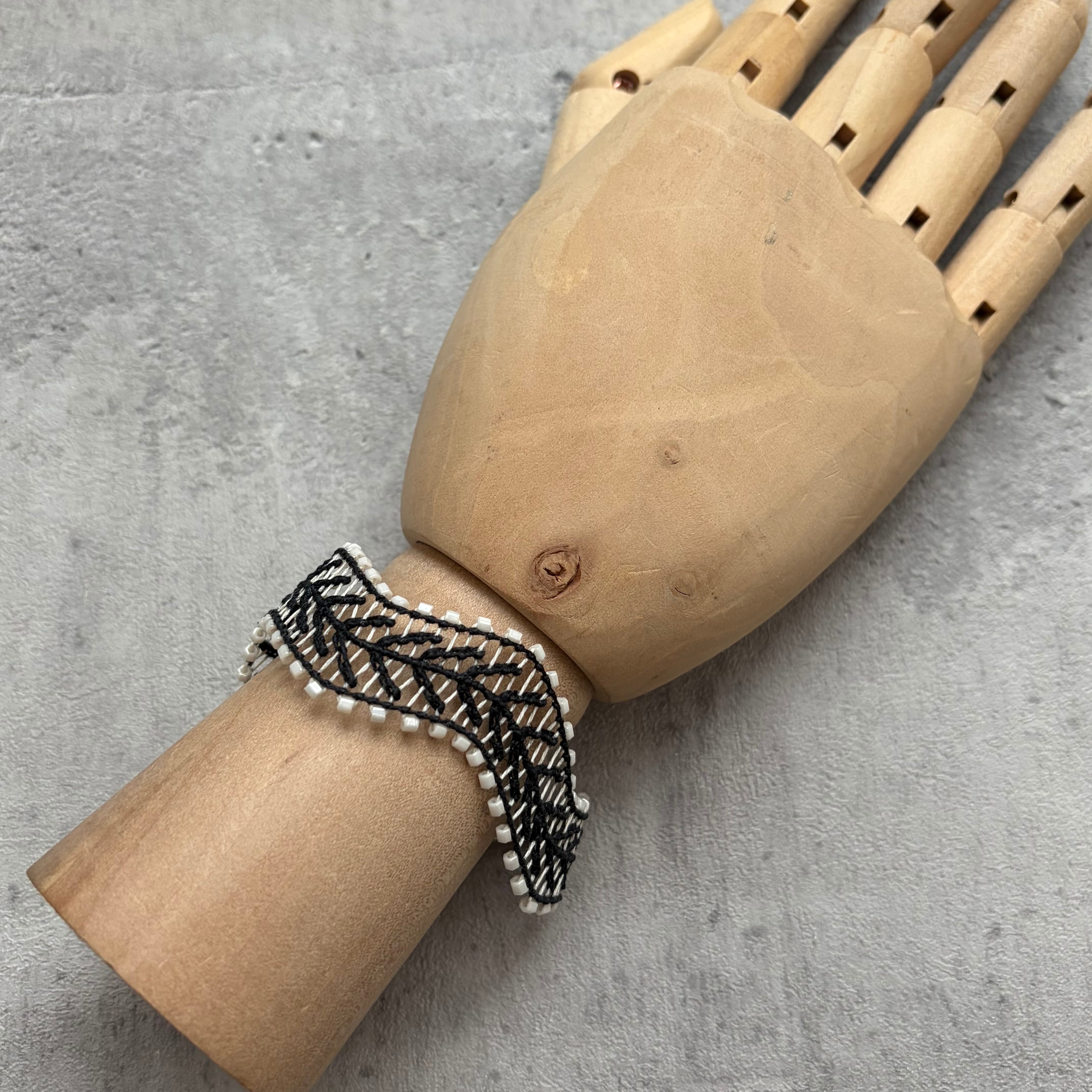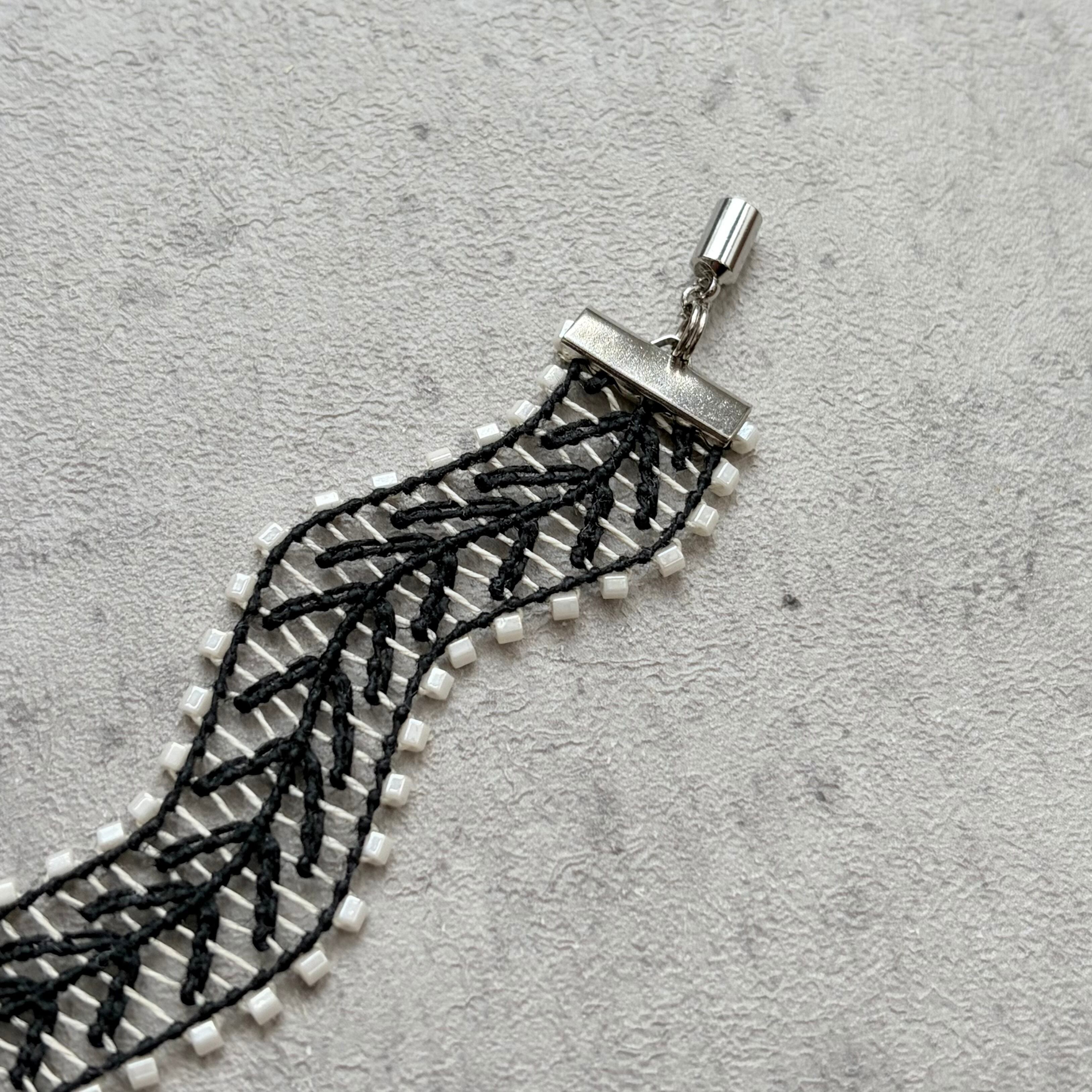 南米パラグアイの伝統工芸ニャンドゥティという美しいレース編みの技法で制作したブレスレットです。