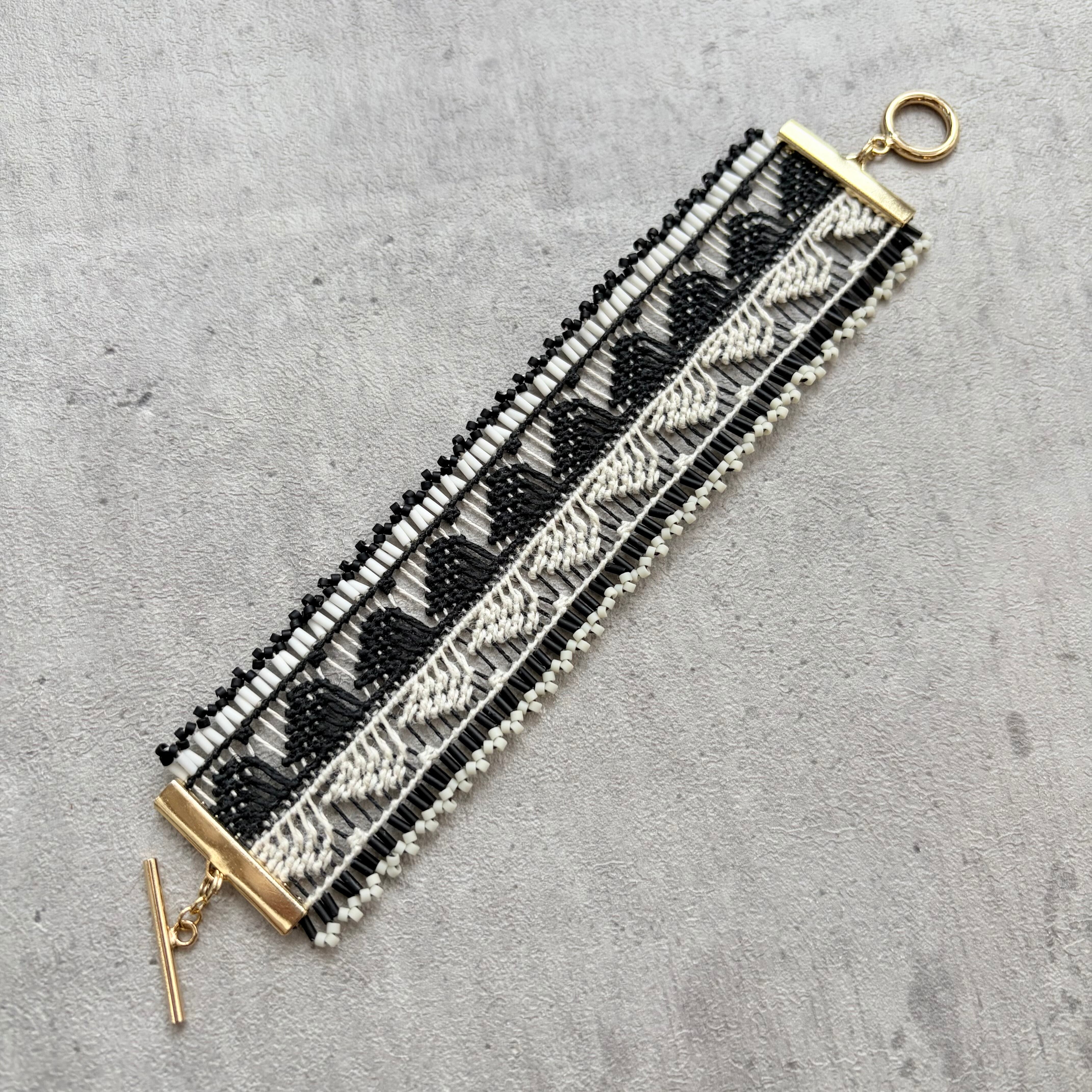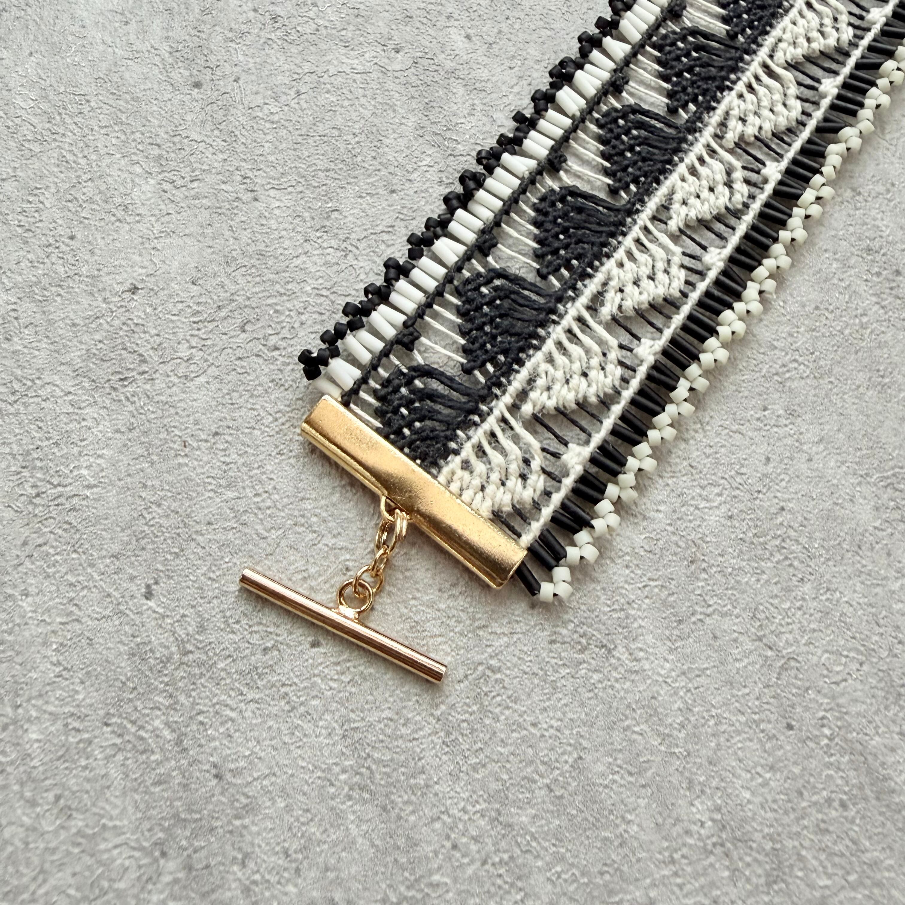 こちらは伝統的なモチーフで魚の骨をイメージした模様を半分でカラーを反転させているところがポイントで、pukaのブレスレットで1番ワイドで存在感があります◎
