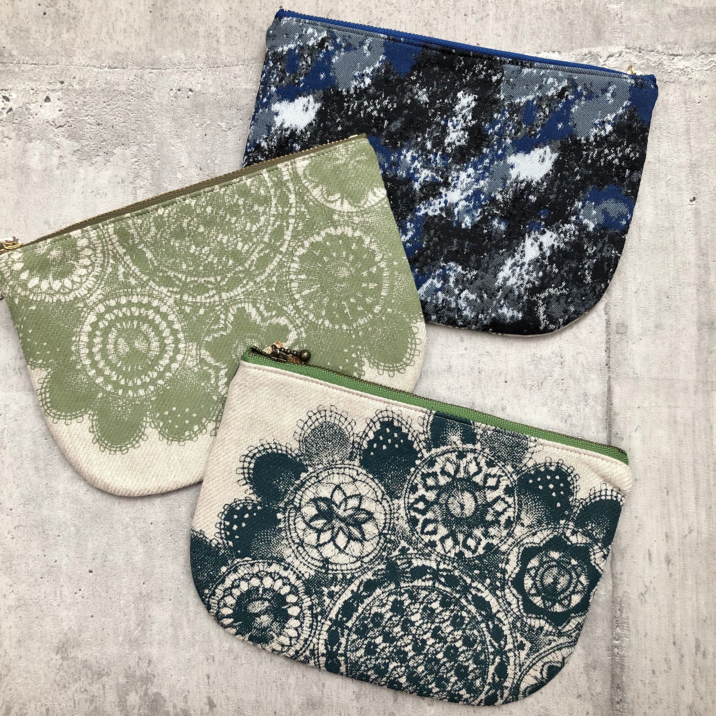 カラー違いで片面の生地は5種類、内側の生地は3種類から選んで、ファスナーも1つ1つ違う種類やカラーのものを組み合わせた一点もののポーチです⭐︎