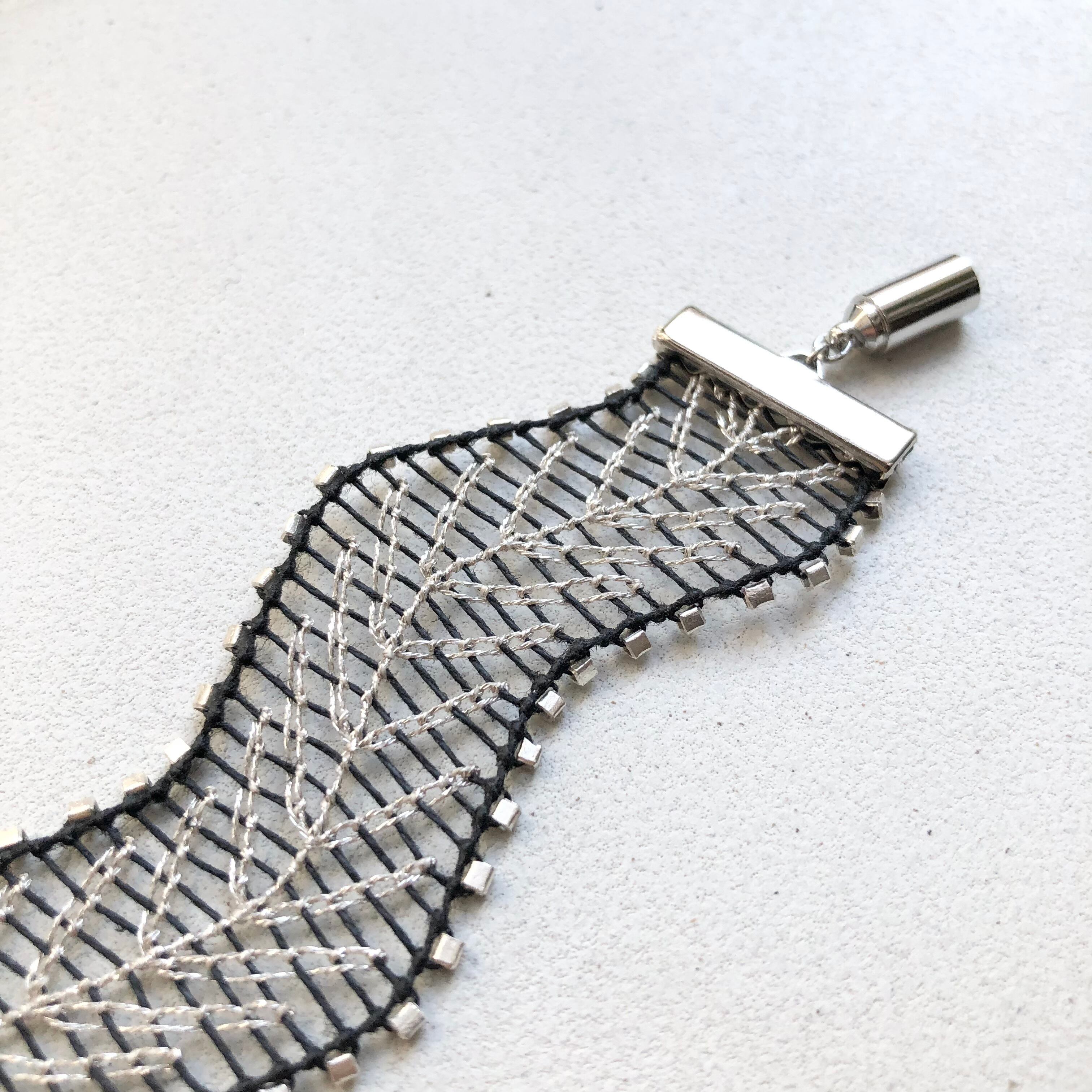 南米パラグアイの伝統工芸ニャンドゥティという美しいレース編みの技法で作ったブレスレットです。